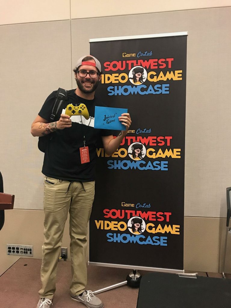 JC: Honestly, my whole experience in the Southwest Video Game Showcase at PHXCC this year seems so surreal. Thursday morning, day one of the con, I felt ill at the thought of hordes of people playing my game, especially children. Up until that point only a handful of people had played it, mostly other game developers, so I didn’t know how well it would be received. I kept waiting for that one person to just hate it and tell me that it sucked and that it was a terrible game, but that moment never came. It got a lot of praise and people absolutely loved it. I was in shock! People would play anywhere from 10 minutes to an hour, sometimes even longer, and some people even came by every day of PHXCC just to play it and talk to me. I had so many people that wanted to buy the game that I wish it had been done so I could have sold it to them right there. I never imagined getting that kind of reception on my first actual game that I’ve shown to the public. It was because of how good the game felt that I won the Juiciest Game Award and the custom gold Xbox One controller, but I got 2nd for the Player’s Choice Award and the Unity backpack because so many people loved it and kept coming back to play it. It was really thanks to everyone that played the game that I won those 2 awards, so I can’t tell you how grateful I am that they did.
